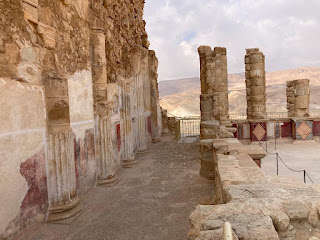 Podobnie bardzo trudna mogłaby być wspinaczka latem na pobliską górę Masada. To starożytna twierdza żydowska położona na szczycie płaskowyżu. Bardzo ciekawe miejsce, ważne dla Izraelczyków, stanowiące symbol heroicznej walki do końca. Na Masadę można się wspiąć, droga jest dobrze przygotowana, choć na końcu bardzo stroma, można też wjechać na nią kolejką. Jeden z przewodników mówił, że według rankingu CNN Travel to jedna z najlepszych kolejek górskich na świecie. Pod Masadą, w hostelu położonym na środku pustyni spędziliśmy kolejną noc.